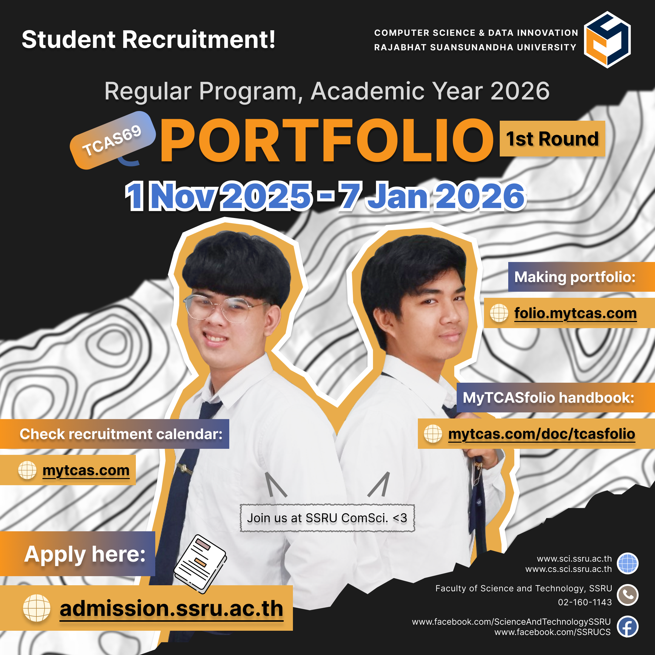 #TCAS69 #Portfolio #StudentAdmission #ComputerScience #DataInnovation #SuanSunandhaRajabhatUniversity #SSRU #DEK69