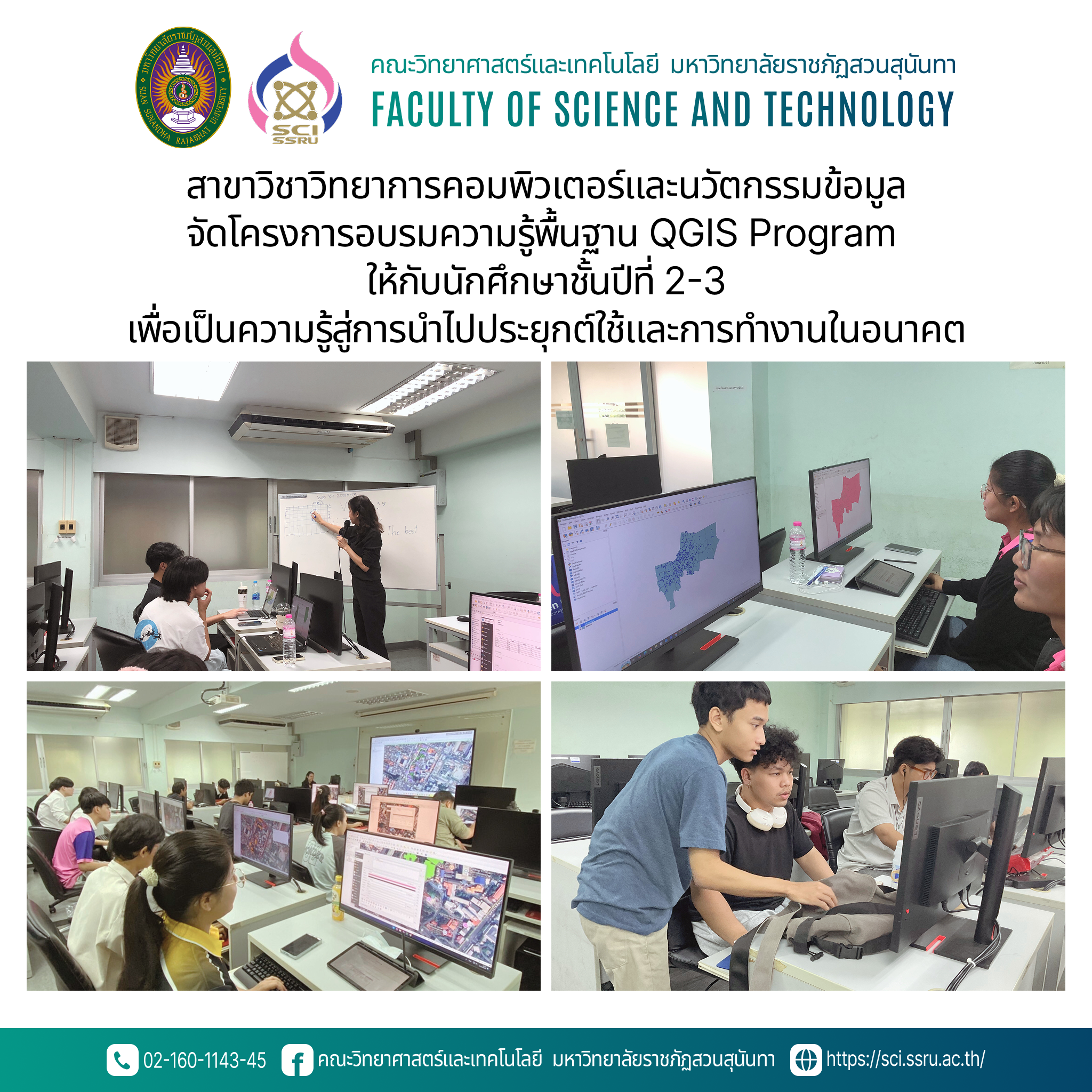 สาขาวิทยาการคอมพิวเตอร์และนวัตกรรมข้อมูล ได้จัดโครงการอบรม “พื้นฐาน QGIS Program" ให้กับนักศึกษาชั้นปีที่ 2-3